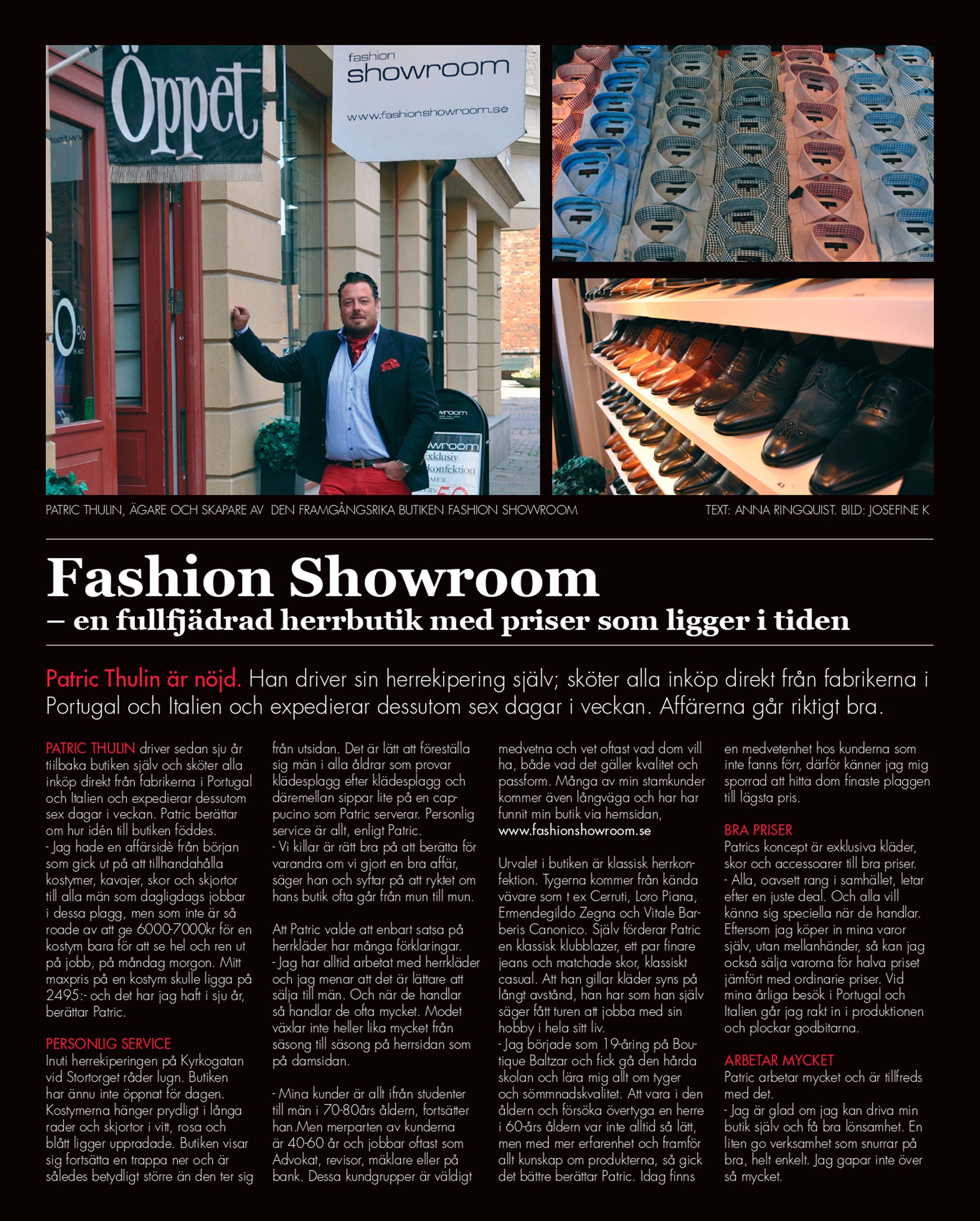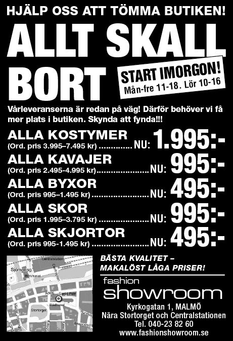 På Fashion Showroom i Malmö hittar du det nödvändigaste för män som du inte kan hitta någon annanstans i butik, och till bästa pris dessutom. Jag besöker de bästa fabrikerna över hela Europa och hittar kläder av högsta kvalitet, och eftersom jag handlar direkt med tillverkaren , kan du vara säker på att spara pengar på märken som Reda, Cerutti, Undandy och mycket mycket mer. Jag kommer personligen att göra mitt bästa för att du ska känna dig välkommen och ge dig den bästa servicen.